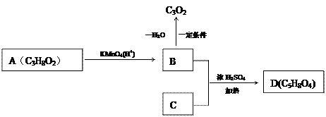 2、填空题 (8分)A、B、C均为有机物,且 1mol B与碳酸氢钠反应生成2mol的二氧化碳。A、B、C有如图所示的转化关系: