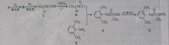 2、填空题 (10分)室安卡因(G)是一种抗心率天常药物,可由下列路线合成;