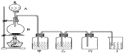 (3)由于浓盐酸易挥发,生成的氯气中混有氯化氢气体,所以必须除去氯化氢。所以在甲装置中盛有饱和食盐水,用来除去Cl2中的HCl气体。