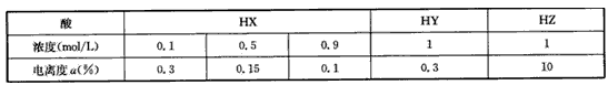 2、选择题 根据下表数据,比较在相同温度下下列三种酸的相对强弱,正确的是