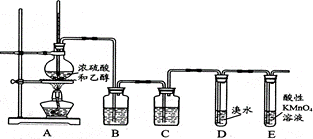 2、实验题 (10分)某化学兴趣小组用下图所示装置进行探究实验,以验证烧瓶中有乙烯生成且乙烯具有不饱和性。当温度迅速上升后,可观察到溴水褪色,烧瓶中浓硫酸与乙醇的混合液变为棕黑色。