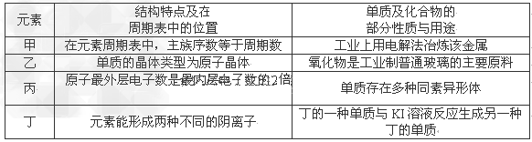 5、选择题 现有4种短周期元素的有关信息如下表所示:则甲、乙、丙、丁四种元素的原子序数从大大小排列的是
