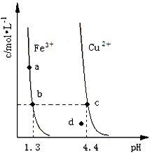3、选择题 某温度下,Fe(OH)3(s)、Cu(OH)2(s)分别在溶液中达到沉淀溶解平衡后,改变溶液pH,金属阳离子浓度的变化如图所示。据图分析,下列判断错误的是
