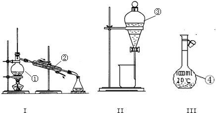 (3)分离碘水中的碘应先选择装置______(填装置序号)进行______和______操作,再用装置______(填装置序号)进行______操作.
