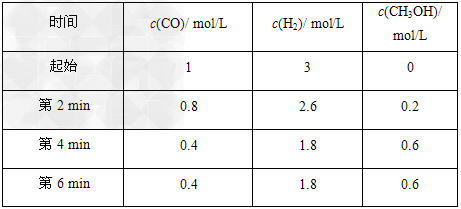 CH3OH(g) ΔH<0.第2?min时只改变一个条件,反应情况如下表