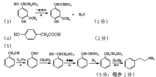 3、填空题 (15分)多巴胺是一种重要的中枢神经传导物质,用来帮助细胞传送脉冲的化学物质,能影响人对事物的欢愉感受。多巴胺可用香兰素与硝基甲烷等为原料按下列路线合成。