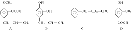 4、填空题 A、B、C、D四种芳香族化合物都是某些植物挥发油中的主要成分,有的是药物,有的是香料。它们的结构简式如下所示