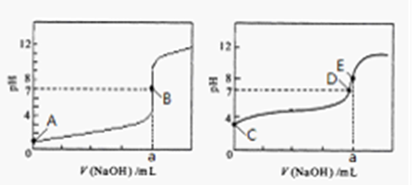 (3)常温下,用0.1000 mol·L-1NaOH溶液分别滴定20.00mL 0.1000 mol·L-1HCl溶液和20.00mL 0.1000 mol·L-1CH3COOH溶液,得到2条滴定曲线,如下图所示。