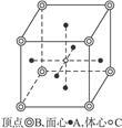 本题解析:观察题中该晶胞的结构,可知处于立方体顶点上的每个B粒子为8个相邻的立方体所共有,因此属于一个晶胞的B粒子共有:8×