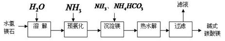 4、填空题  (14分)镁及其化合物在生产生活中有重要的作用。以水氯镁石(主要成分为MgCl2·6H2O)为原料生产碱式碳酸镁的主要流程如下: