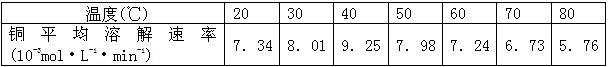 (3)控制其他条件相同,印刷电路板的金属粉末用10℅H2O2和3.0mol·L-1 H2SO4的混合溶液处理,测得不同温度下铜的平均溶解速率(见下表)。