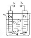 D.a和b分别连接直流电源正、负极,电压足够大时,Cu2+向铜电极移动