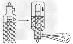 5、选择题 一种常用的泡沫灭火器构造如下图。内筒a是玻璃瓶,外筒b是钢瓶,平时泡沫灭火器内筒外筒盛有液态试剂,当遇火警时,将灭火器取下倒置,内外筒液体试剂立即混合产生大量CO2泡沫灭火,从液态试剂在灭火器中长久放置和快速灭火两个角度分析,盛放药品正确的是?