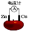 2、填空题 理论上任何自发的氧化还原反应都可以设计成原电池。现使用锌电极、铜电极、橙子(酸性介质)设计如下水果电池。