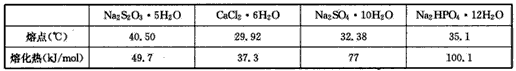 1、填空题 有些盐的结晶水合物,白天在温度不太高时就能熔化(实质是溶于自身的结晶水中),同时吸收热量;在晚上又可缓慢凝固而释放热量,用以调节室温,称为潜热材料。现有几种盐的水合晶体有关数据如下: