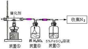 请回答:装置⑦的作用可能是?;若进入装置⑤的NO共22.4L(已折算为标准状况,下同),氨气过量,最后收集到标准状况下11.2LN2,则NO的转化率是?。