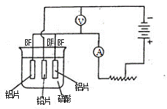 c.阳极氧化。以铅为阴极,铝片为阳极,以硫酸溶液为电解液,按照下图连接电解装置,电解40min后取出铝片,用水冲洗,放在水蒸汽中封闭处理20~30min,即可得到更加致密的氧化膜。