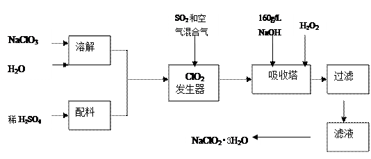 2、填空题  亚氯酸钠(NaClO2)是一种重要的含氯消毒剂,主要用于水的消毒以及砂糖、油脂的漂白与杀菌。以下是过氧化氢法生产亚氯酸钠的工艺流程图: