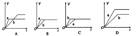 5、选择题 将等质量的两份锌a、b分别加入过量的稀硫酸,同时向a中加少量的CuSO4溶液,下图中产生氢气的体积V(L)与时间t(min)的关系,其中正确的是( )