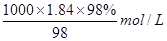 本题解析:98%的浓H2SO4的物资的量浓度为c==