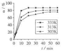 )在不同温度下随反应时间(t)的变化见下图,由此图可得出: