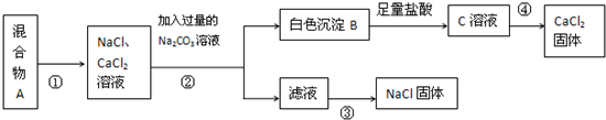 | D | 证明H2CO3酸性比H2SiO3强 | 将CO2通入Na2SiO3溶液中 参考答案:D 本题解析:A、二氧化碳、二氧化硫都与碳酸钠溶液反应,不符合除杂的原则,错误;B、Cu与CuO都与硝酸反应,不符合除杂的原则,错误;C、检验溶液中是否含有亚铁离子,应先加入KSCN溶液,溶液不变红,再向溶液中滴加氯水,溶液变红色,说明溶液中存在亚铁离子,直接加入氯水,不能判断原溶液中含有亚铁离子,错误;D、将CO2通入Na2SiO3溶液中,若出现白色沉淀,证明碳酸酸性比硅酸酸性强,正确,答案选D。 本题难度:一般 2、填空题 (6分)有两包白色粉末,只知分别是K2CO3和NaHCO3,请你写出鉴别方法(写出3种方法可得6分,3种以上方法得7分) 参考答案:(6分) (1) 加热分解法:取两种少许待检粉末于试管中,分别加热,有CO2气体产生的是NaHCO3。 本题解析:考查物质的检验,本质是考查相关物质性质的不同 本题难度:简单 3、选择题 关于纸层析法分离铁离子和铜离子的实验,下列说法正确的是 参考答案:D 本题解析:略 本题难度:简单 4、简答题 某化学兴趣小组设计了如下实验方法来分离NaCl和CaCl2两种固体混合物 参考答案:循环转化图的含义是:现将混合物加水溶解形成水溶液,再向氯化钠和氯化钙的水溶液中加入碳酸钠,就会和氯化钙反应生成碳酸钙和氯化钠,碳酸钙能和盐酸反应生成氯化钙,碳酸铵和盐酸反应生成氯化钠,每次所加试剂均过量. 本题解析: 本题难度:一般 5、选择题 某盐溶液中离子的浓度为:c(Na+)=0.2 mol/L,c(Mg2+)=0.4 mol/L,c(Cl-)=0.4 mol/L和未知浓度的SO42-,则SO42-的`物质的量浓度为 参考答案:B 本题解析:由于该混合物中共含有四种微粒,根据溶液呈电中性,四者所带的正负电荷总数应相等,所以:n(Na+)+2n(Mg2+)=n(Cl-)+2n(SO42-),即0.2 mol/L+2×0.4 mol/L=0.4 mol/L+2×c(SO42-),解得c(SO42-)=0.3 mol/L. 本题难度:一般 |
