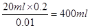 (3)稀释前钠离子的浓度是0.2mol/L,而稀释后钠离子的浓度是0.01mol/L,所以稀释后溶液的体积是。