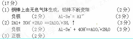 (1)将铜棒和铝棒用导线连接后置于盛稀盐酸的烧杯中,看到的现象是 。铝棒做 极,该极的电极反应方程式为 _______ 。