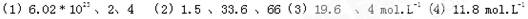 (1)1mol H2SO4中约含有?个H2SO4,?mol H ,?mol O