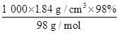 ×0.05 L×18.4 mol/L,即小于0. 46 mol。