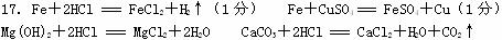 3、填空题 (4分)一些老式建筑的下水道都是铁管铺设的,若将实验室的废盐酸倒入下水道将会发生反应(写化学方程式,下同)?,