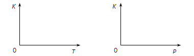 (2)25℃时,反应2CO2 (g) 2CO(g)+O2(g)的平衡常数K=2.96×10-92。在一个体积可变的密闭容器(起始时的容器体积为1L)中充入一定量的CO2、CO、O2混合气体,要使容器中的反应开始时向CO2分解的方向移动,则起始时充入的三种气体的物质的量应满足的关系是?。当该反应在25℃时达到平衡后,其它条件不变时,升高温度或增加容器的压强,均能使该平衡发生移动,请在下列坐标中作出该反应的平衡常数K随温度(T)、压强(P)变化而变化的示意图: