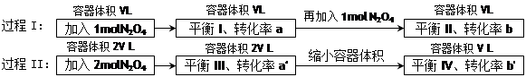 2、选择题  若过程I与过程II温度相同,则关于反应N2O4(g) 2NO2 (g)在下列过程中发生的变化描述正确的是