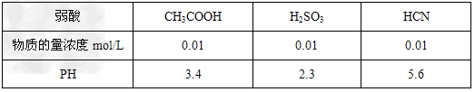 5、选择题 25°C时,几种弱酸溶液的pH如下表所示