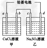 (1)如图,用铅蓄电池电解甲、乙两电解池中的溶液。已知铅蓄电池的总反应为Pb(s)+PbO2(s)+2H2SO4(aq)