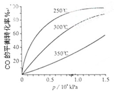 CH3OH(g)。CO在不同温度下的平衡转化率与压强的关系如下图所示。该反应ΔH 0(填“>”或“ <”)。实际生产条件控制在250℃、1.3×104kPa左右,选择此压强的理由是 。