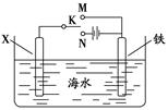 ②若X为锌,开关K置于M处,该电化学防护法称为 。