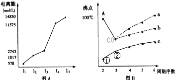 (2)图B是研究部分元素的氢化物的沸点变化规律的图象,折线c可以表达出第______族元素氢化物的沸点的变化规律,①②③中表示为SiH4的是______