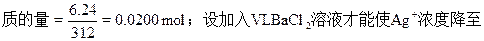 (3)在(1)题烧杯中需加入多少L 0.0268 mol/L BaCl2溶液,才能使原溶液中Ag+浓度降低至0.0200 mol/L