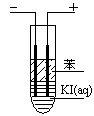 (3)如图,在粗试管中加入饱和的KI溶液,然后再加入苯,插入两根石墨电极,接通直流电源。连接电源负极的电极为 极,电极反应式为 。通电一段时间后,断开电源,振荡试管,上层溶液为 色。
