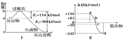 ②图Ⅱ表示氧族元素中的氧、硫、硒(Se)、碲生成氢化物时的焓变数据,根据这组焓变数据可确定a、b、c、d分别代表的元素,试写出硒化氢发生分解反应的热化学方程式: 。