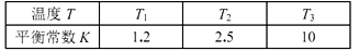 (3)下表为不同温度下该反应的平衡常数,其他条件相同时,在___(填"T1”、“T2”.,“T3”)温度下反应达到平衡所需时间最长: