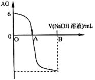 4、选择题  有人曾建议用AG表示溶液的酸度,AG的定义为:AG=lg,室温下实验室用0.01 mol·L-1的氢氧化钠溶液滴定20 mL相同浓度的醋酸溶液,滴定曲线如右图所示。下列有关叙述正确的是( )