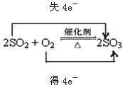 SO2制备SO3反应的化学方程式,并用双线桥标出电子转移的方向和数目 ;