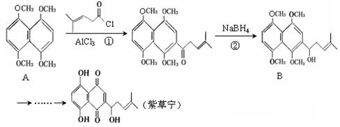 1、填空题 (14分)紫草宁具有多种生物活性,能抗菌、消炎、抗肿瘤等。合成紫草宁的部分工艺流程如下: