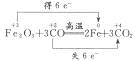4、填空题 根据反应:Fe2O3+3CO2Fe+3CO2,若有3 mol e-转移,则有_______mol 铁生成,有_______个CO分子参加反应。
