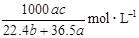 4、选择题 标准状况下将 aL HCl气体溶于bmL水中,得到的盐酸溶液密度为c g·cm-3,则该溶液中溶质的物质的量的浓度可表示为、