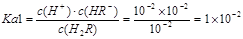 A.H2R是二元弱酸,其Ka1=1×10-2