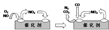 ⑶为避免汽车尾气中的有害气体对大气的污染,给汽车安装尾气净化装置。净化装置里装有含Pd等过渡元素的催化剂,气体在催化剂表面吸附与解吸作用的机理如下图所示。?