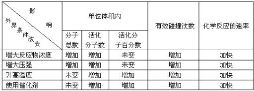 1、填空题 试将外界条件对化学反应速率的影响结果填入下表中。